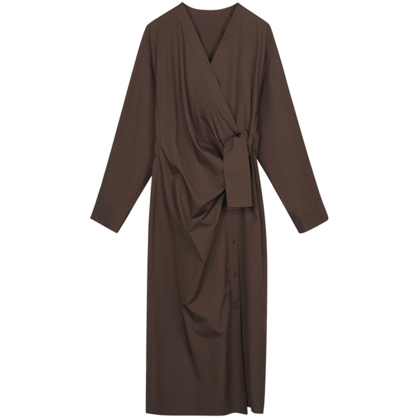 【商场同款】LESS2024年春秋新款V领系带长袖衬衫连衣裙2O7G12420
