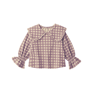 千趣会童装25春秋女童时尚甜美经典格纹娃娃领长袖套头衫儿童上衣